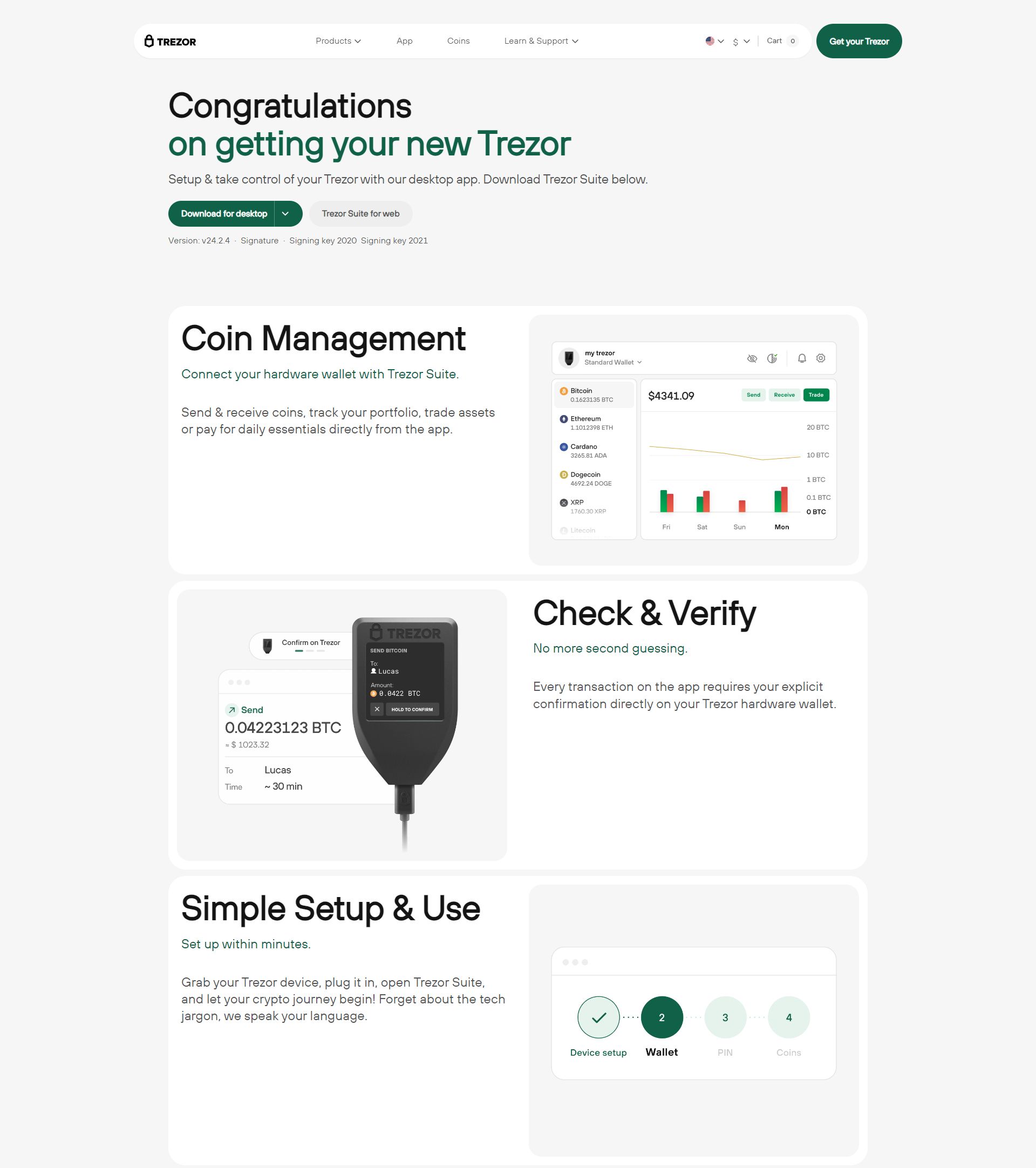 By directing users to a single trusted starting point, Trezor reduces the risk of fake apps, malicious downloads, and setup errors that could compromise private keys.
